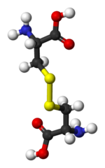 Potassium Bromate (KBrO3) is added to flour as a conditioner which enhances the structure of bread.[4] It may do this by forming disulfide bonds in a reaction like the one in Example 3, between two cysteine amino acids. The actual mechanism for bromate action is still not known, but it may involve oxidation of glutathione to give a disulfide link (analagous to cysteine)[5] This mechanism has been demonstrated in pound cake, where the links are in egg proteins[6][7] The function of the KBrO3 is to remove the 2 electrons, which is necessary to form the disulfide bond, as shown in the figure below. Each of the cysteine amino acids would be in a protein chain, so the reaction would link two chains, imparting cohesion to the dough.
