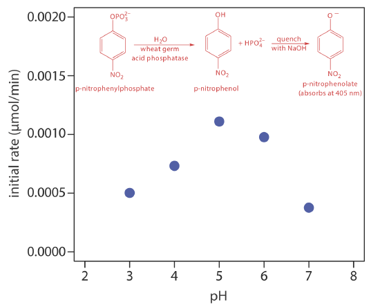 ![The graph of concentration of substrate versus d[p]/dt increases rapidly in the beginning before slowing and approaching V(max). The initial slope of the graph is the analytical region for the analysis of substrates while the end slope of the graph is the analytical region of enzymes.](https://chem.libretexts.org/@api/deki/files/186795/Figure13.10.png?revision=1&size=bestfit&width=392&height=330)