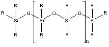 Partition HPLC uses liquid bonded phase columns, where the liquid stationary phase is chemically bonded to the packing material. The packing material is usually hydrolyzed silica which reacts with the bond-phase coating. Common bond phase coatings are siloxanes. The relative structure of the siloxane is shown in Figure \(\PageIndex{1}\).
