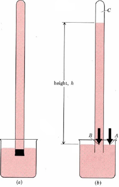 \(\newcommand{\avec}{\mathbf a}\) \(\newcommand{\bvec}{\mathbf b}\) \(\newcommand{\cvec}{\mathbf c}\) \(\newcommand{\dvec}{\mathbf d}\) \(\newcommand{\dtil}{\widetilde{\mathbf d}}\) \(\newcommand{\evec}{\mathbf e}\) \(\newcommand{\fvec}{\mathbf f}\) \(\newcommand{\nvec}{\mathbf n}\) \(\newcommand{\pvec}{\mathbf p}\) \(\newcommand{\qvec}{\mathbf q}\) \(\newcommand{\svec}{\mathbf s}\) \(\newcommand{\tvec}{\mathbf t}\) \(\newcommand{\uvec}{\mathbf u}\) \(\newcommand{\vvec}{\mathbf v}\) \(\newcommand{\wvec}{\mathbf w}\) \(\newcommand{\xvec}{\mathbf x}\) \(\newcommand{\yvec}{\mathbf y}\) \(\newcommand{\zvec}{\mathbf z}\) \(\newcommand{\rvec}{\mathbf r}\) \(\newcommand{\mvec}{\mathbf m}\) \(\newcommand{\zerovec}{\mathbf 0}\) \(\newcommand{\onevec}{\mathbf 1}\) \(\newcommand{\real}{\mathbb R}\) \(\newcommand{\twovec}[2]{\left[\begin{array}{r}#1 \\ #2 \end{array}\right]}\) \(\newcommand{\ctwovec}[2]{\left[\begin{array}{c}#1 \\ #2 \end{array}\right]}\) \(\newcommand{\threevec}[3]{\left[\begin{array}{r}#1 \\ #2 \\ #3 \end{array}\right]}\) \(\newcommand{\cthreevec}[3]{\left[\begin{array}{c}#1 \\ #2 \\ #3 \end{array}\right]}\) \(\newcommand{\fourvec}[4]{\left[\begin{array}{r}#1 \\ #2 \\ #3 \\ #4 \end{array}\right]}\) \(\newcommand{\cfourvec}[4]{\left[\begin{array}{c}#1 \\ #2 \\ #3 \\ #4 \end{array}\right]}\) \(\newcommand{\fivevec}[5]{\left[\begin{array}{r}#1 \\ #2 \\ #3 \\ #4 \\ #5 \\ \end{array}\right]}\) \(\newcommand{\cfivevec}[5]{\left[\begin{array}{c}#1 \\ #2 \\ #3 \\ #4 \\ #5 \\ \end{array}\right]}\) \(\newcommand{\mattwo}[4]{\left[\begin{array}{rr}#1 \amp #2 \\ #3 \amp #4 \\ \end{array}\right]}\) \(\newcommand{\laspan}[1]{\text{Span}\{#1\}}\) \(\newcommand{\bcal}{\cal B}\) \(\newcommand{\ccal}{\cal C}\) \(\newcommand{\scal}{\cal S}\) \(\newcommand{\wcal}{\cal W}\) \(\newcommand{\ecal}{\cal E}\) \(\newcommand{\coords}[2]{\left\{#1\right\}_{#2}}\) \(\newcommand{\gray}[1]{\color{gray}{#1}}\) \(\newcommand{\lgray}[1]{\color{lightgray}{#1}}\) \(\newcommand{\rank}{\operatorname{rank}}\) \(\newcommand{\row}{\text{Row}}\) \(\newcommand{\col}{\text{Col}}\) \(\renewcommand{\row}{\text{Row}}\) \(\newcommand{\nul}{\text{Nul}}\) \(\newcommand{\var}{\text{Var}}\) \(\newcommand{\corr}{\text{corr}}\) \(\newcommand{\len}[1]{\left|#1\right|}\) \(\newcommand{\bbar}{\overline{\bvec}}\) \(\newcommand{\bhat}{\widehat{\bvec}}\) \(\newcommand{\bperp}{\bvec^\perp}\) \(\newcommand{\xhat}{\widehat{\xvec}}\) \(\newcommand{\vhat}{\widehat{\vvec}}\) \(\newcommand{\uhat}{\widehat{\uvec}}\) \(\newcommand{\what}{\widehat{\wvec}}\) \(\newcommand{\Sighat}{\widehat{\Sigma}}\) \(\newcommand{\lt}{<}\) \(\newcommand{\gt}{>}\) \(\newcommand{\amp}{&}\) \(\definecolor{fillinmathshade}{gray}{0.9}\)The pressure of the atmosphere is exerted in all directions, not just downward, at any given altitude. You can show this with a simple party trick that allows you to invert a cup of water without spilling a drop.