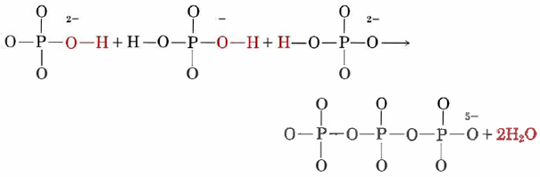 Another major commercial use of phosphates is in laundry detergents. The problem of precipitation of soap by hard-water ions such as Ca2+ was mentioned in the section on alkaline earth metals. This can be prevented, and the cleaning power of synthetic detergents can be improved, by adding phosphates. The compound usually used is sodium tripolyphosphate, whose anion is a condensation polymer of hydrogen phosphate and dihydrogen phosphate ions: