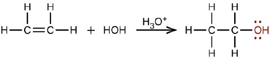 Large quantities of ethanol are synthesized from the addition reaction of water with ethylene using an acid as a catalyst: