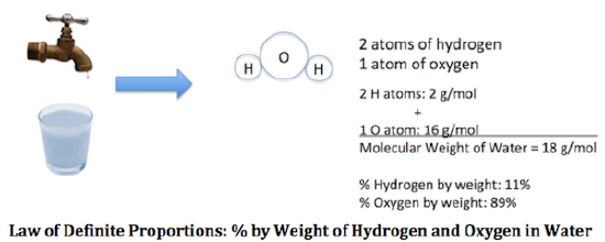 Another scientist, Proust, said that the proportions were always the same, and eventually persuaded Berthollet of the law of definite proportions. Proust was more careful to study only pure compounds, and knew how precise his measurements were, so that even though the exact numbers didn't always come out the same, once he rounded to the correct number of significant figures, the ratios were the same, no matter how the material was prepared. Review the difference between accuracy and precision on the previous page (Lavoisier), and how to use the correct number of significant figures. (Some types of materials, like minerals or alloys, can have variable proportions; Berthollet was also right that in solution compositions might be possible that were not observed in the isolated substances. Berthollet's arguments on composition were inspired by his correct understanding of chemical equilibrium, but because he was wrong about definite proportions for pure compounds, this contribution to scientific knowledge was not recognized for a long time.)