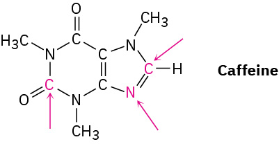 PROBLEM 1.48 Complete the electron-dot structure of caffeine, showing all lone-pair electrons, and identify the hybridization of the indicated atoms.