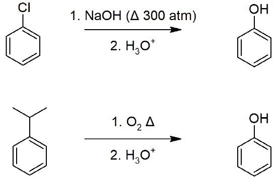 - Phenols can be prepared from chlorobenzene or isopropylbenzene.