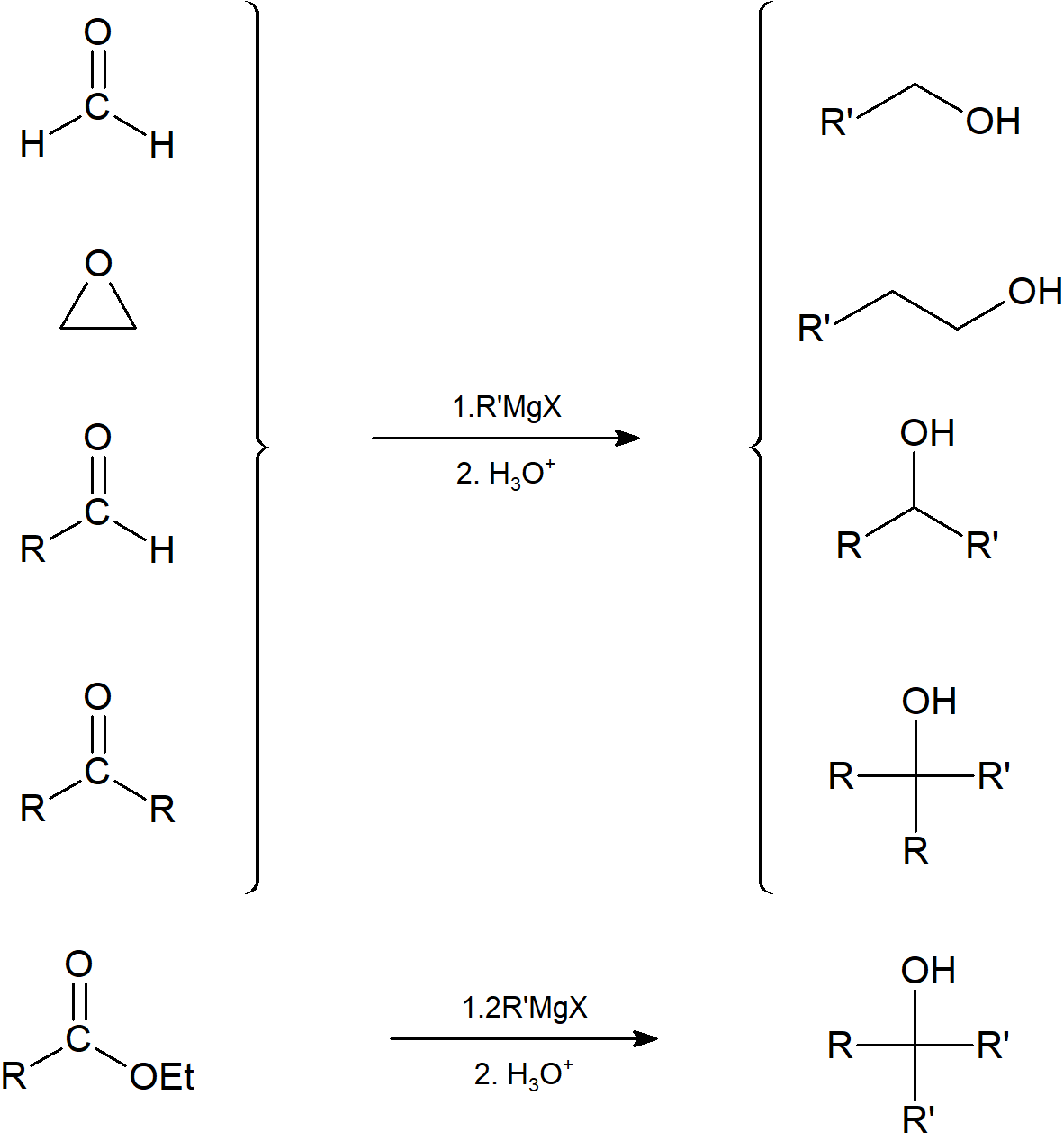 - Skill 17.9 Draw mechanisms to form alcohols by reaction of carbonyl compounds with Grignard reagents (and other organometallics).