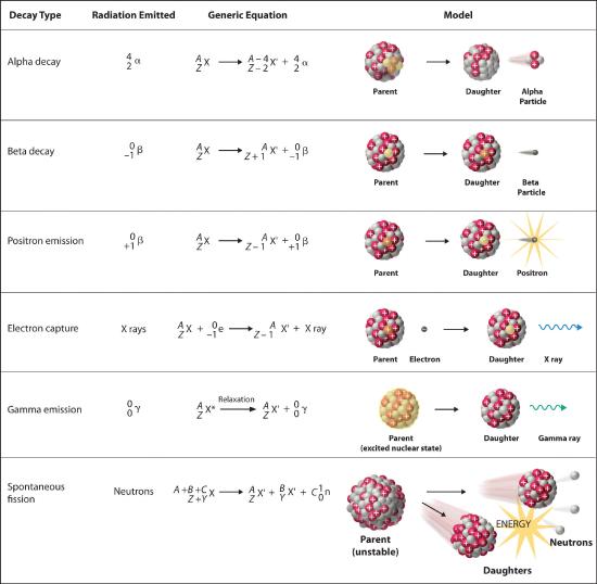 Figure 24.2.1 Common Modes of Nuclear Decay